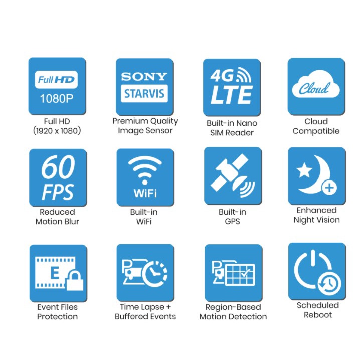 The Sony STARVIS™ image sensor that equips the DR750X-2CH LTE PLUS Series front and rear cameras delivers outstanding low-light performance.