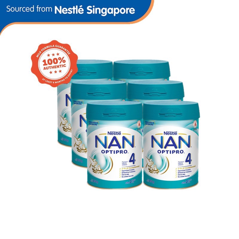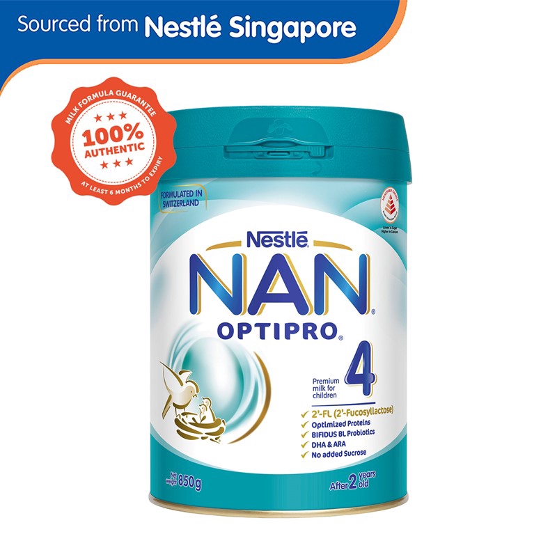 NAN® OPTIPRO® 4 850g x 6 [NEW PACKAGING with Improved Formulation from Singapore] now with +ARA (arachidonic acid) and +2'FL (2-fucosyllactose). NAN® OPTIPRO® 4 850g is a Healthier Choice product. It is 25% lower in sugar and 25% higher in calcium than regular growing up milk.