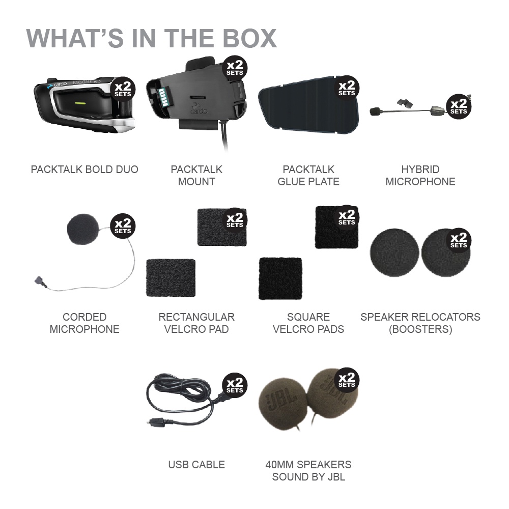 Cardo partnered with JBL to deliver the best sound quality the market has ever heard. The JBL speakers included with the PackTalk Slim measure 40mm across for a full-range immersive listening experience. You'll hear balanced bass and crisp treble like never before. Good technology should only compliment your riding experience. With Cardo BOLD, an advanced Natural Voice Operation platform keeps your hands on your bars where they belong. "Hey Cardo, music on", "Hey Cardo, next track", "Hey Cardo, mute audio"; a full suite of menu navigation lies right within easy reach of your vocal fingertips. The revolutionary Scala Rider PackTalk features dual-core wireless technologies for a stable and active communication network. The Bluetooth mode offers legacy by featuring full backward compatibility with other Scala Rider models. The DMC mode will compliment and expand standard Bluetooth connectivity by offering group communication that is far superior to any other existing alternatives.