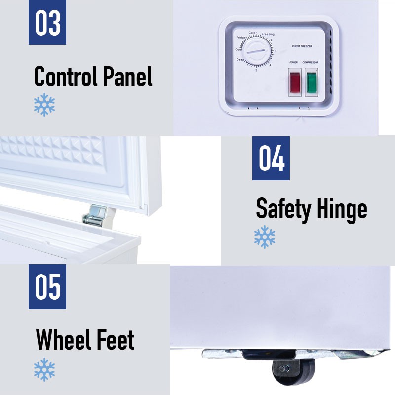 • No auto defrost function, built-in-drainage hole on the bottom of the freezer for easy drainage